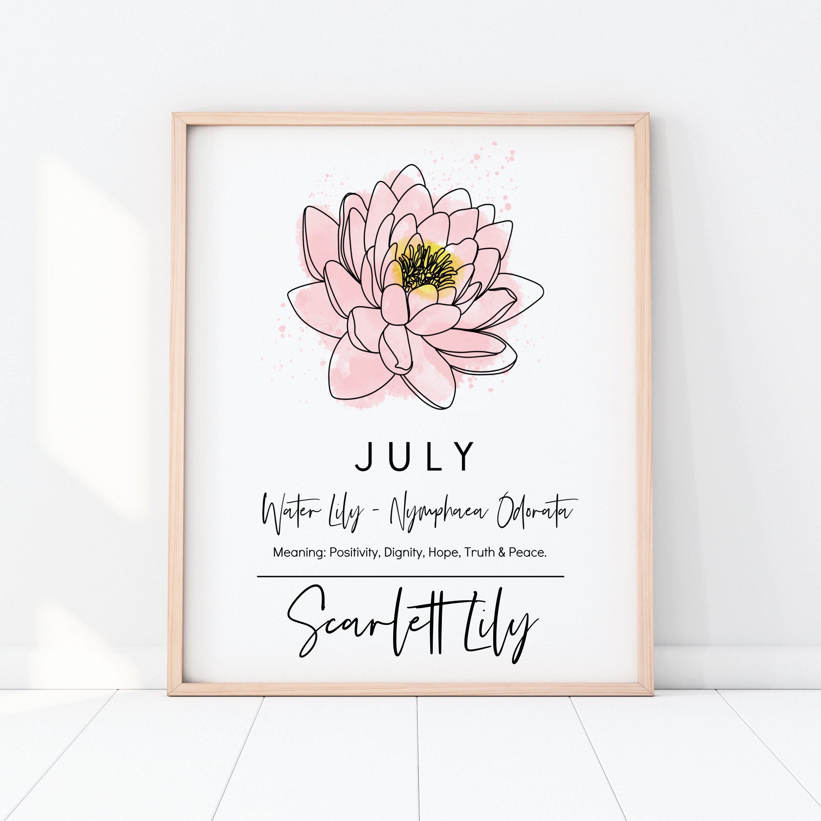 July Birth Month Flower Water Lily Personalized Art Digital Etsy